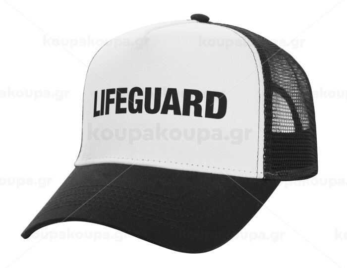Lifeguard, Adult Structured Trucker Hat, with Mesh, WHITE/BLACK (100% COTTON, ADULT, UNISEX, ONE SIZE)