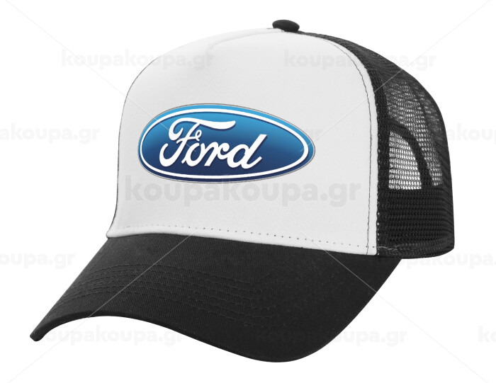 Ford, Adult Structured Trucker Hat, with Mesh, WHITE/BLACK (100% COTTON, ADULT, UNISEX, ONE SIZE)