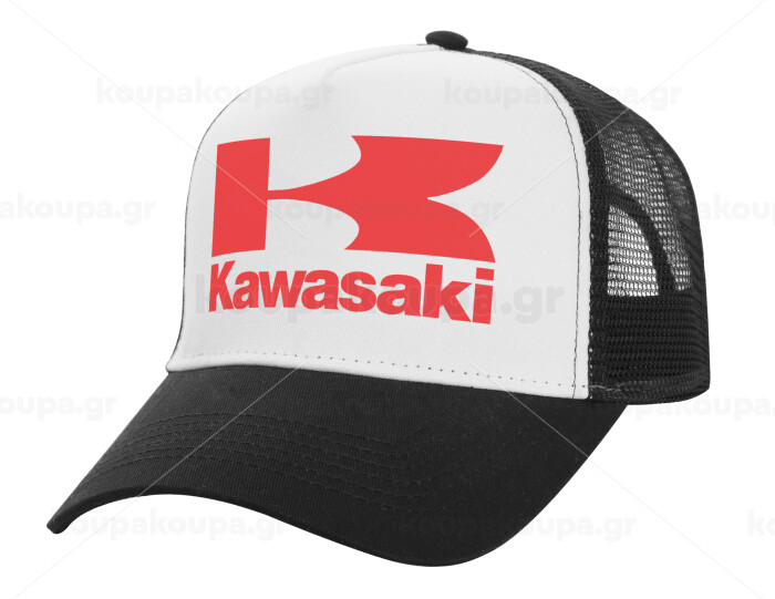 Kawasaki, Adult Structured Trucker Hat, with Mesh, WHITE/BLACK (100% COTTON, ADULT, UNISEX, ONE SIZE)