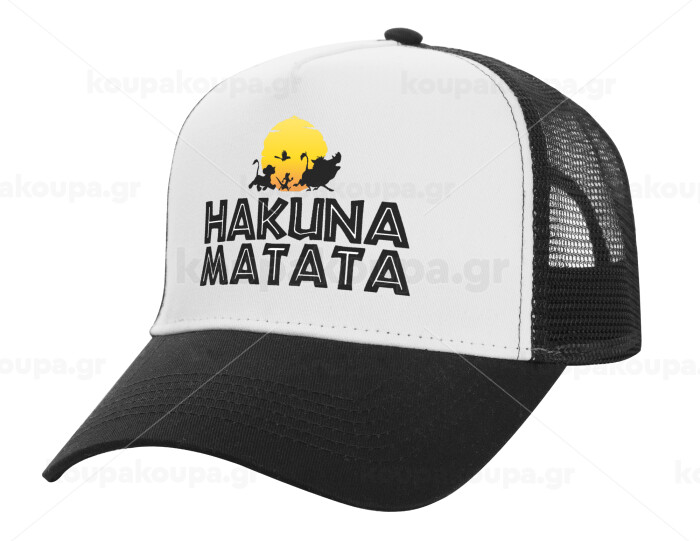 Hakuna Matata, Adult Structured Trucker Hat, with Mesh, WHITE/BLACK (100% COTTON, ADULT, UNISEX, ONE SIZE)