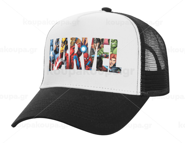 MARVEL characters, Adult Structured Trucker Hat, with Mesh, WHITE/BLACK (100% COTTON, ADULT, UNISEX, ONE SIZE)