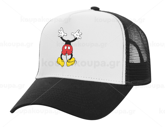 Mickey hide..., Adult Structured Trucker Hat, with Mesh, WHITE/BLACK (100% COTTON, ADULT, UNISEX, ONE SIZE)