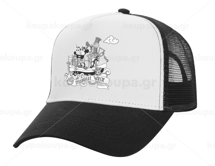 Mickey steamboat, Adult Structured Trucker Hat, with Mesh, WHITE/BLACK (100% COTTON, ADULT, UNISEX, ONE SIZE)