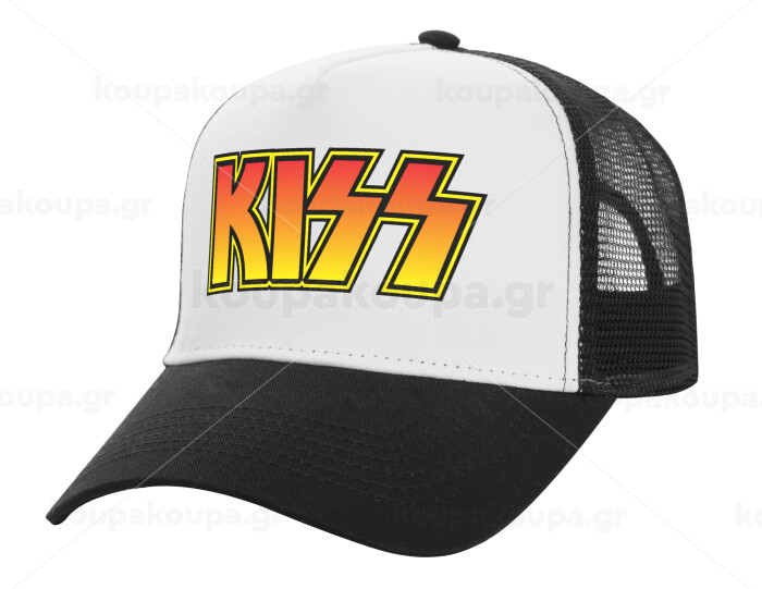 KISS, Adult Structured Trucker Hat, with Mesh, WHITE/BLACK (100% COTTON, ADULT, UNISEX, ONE SIZE)