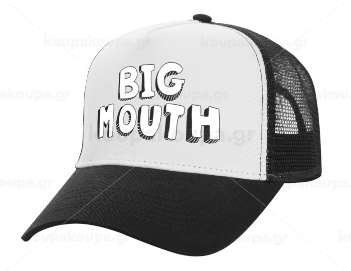 Big mouth, Adult Structured Trucker Hat, with Mesh, WHITE/BLACK (100% COTTON, ADULT, UNISEX, ONE SIZE)