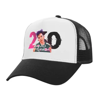 Squid game 2, Thanos 230, Adult Structured Trucker Hat, with Mesh, WHITE/BLACK (100% COTTON, ADULT, UNISEX, ONE SIZE)
