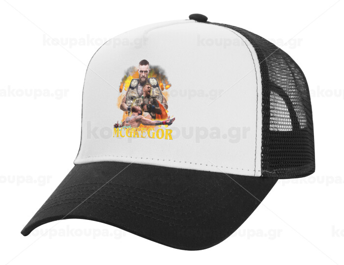 Conor McGregor Notorious, Adult Structured Trucker Hat, with Mesh, WHITE/BLACK (100% COTTON, ADULT, UNISEX, ONE SIZE)