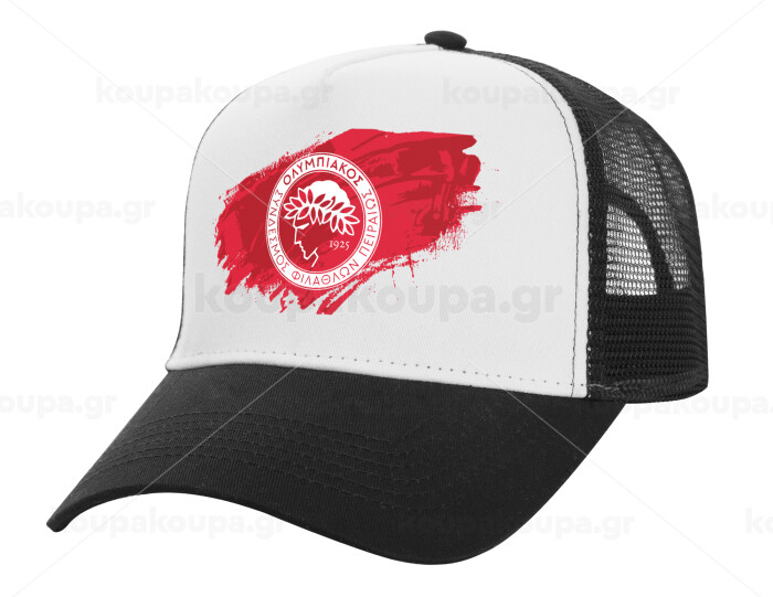 Olympiacos F.C., Adult Structured Trucker Hat, with Mesh, WHITE/BLACK (100% COTTON, ADULT, UNISEX, ONE SIZE)