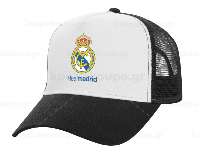 Real Madrid CF, Adult Structured Trucker Hat, with Mesh, WHITE/BLACK (100% COTTON, ADULT, UNISEX, ONE SIZE)
