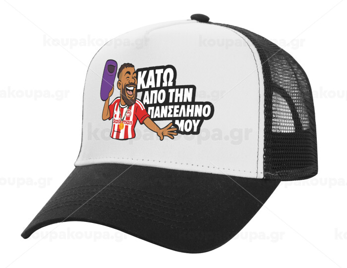 Ροντινέι, "ΚΑΤΩ ΑΠΟ ΤΗΝ ΠΑΝΣΕΛΗΝΟ ΜΟΥ!", Adult Structured Trucker Hat, with Mesh, WHITE/BLACK (100% COTTON, ADULT, UNISEX, ONE SIZE)
