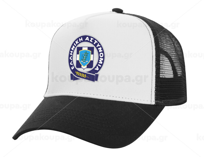 Ελληνική Αστυνομία, Adult Structured Trucker Hat, with Mesh, WHITE/BLACK (100% COTTON, ADULT, UNISEX, ONE SIZE)