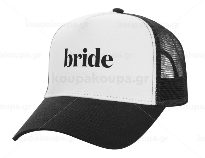 Bride display, Adult Structured Trucker Hat, with Mesh, WHITE/BLACK (100% COTTON, ADULT, UNISEX, ONE SIZE)