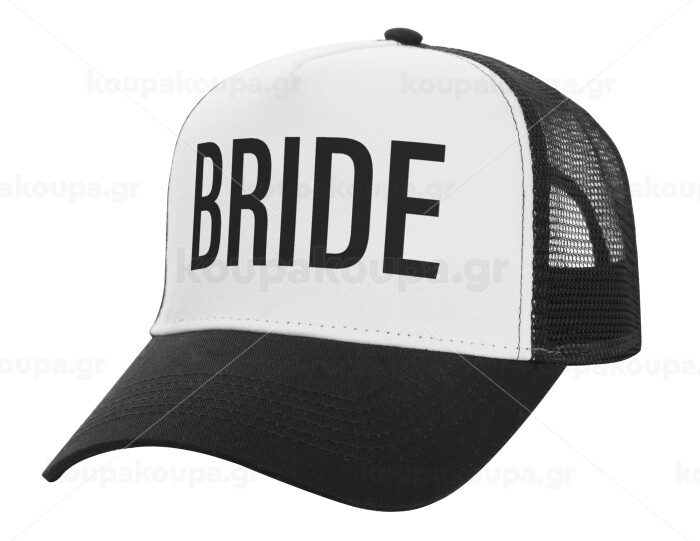 BRIDE, Adult Structured Trucker Hat, with Mesh, WHITE/BLACK (100% COTTON, ADULT, UNISEX, ONE SIZE)