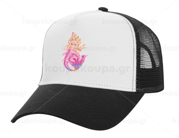 Barbie mermaid , Adult Structured Trucker Hat, with Mesh, WHITE/BLACK (100% COTTON, ADULT, UNISEX, ONE SIZE)