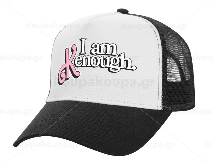 Barbie, i am Kenough, Adult Structured Trucker Hat, with Mesh, WHITE/BLACK (100% COTTON, ADULT, UNISEX, ONE SIZE)