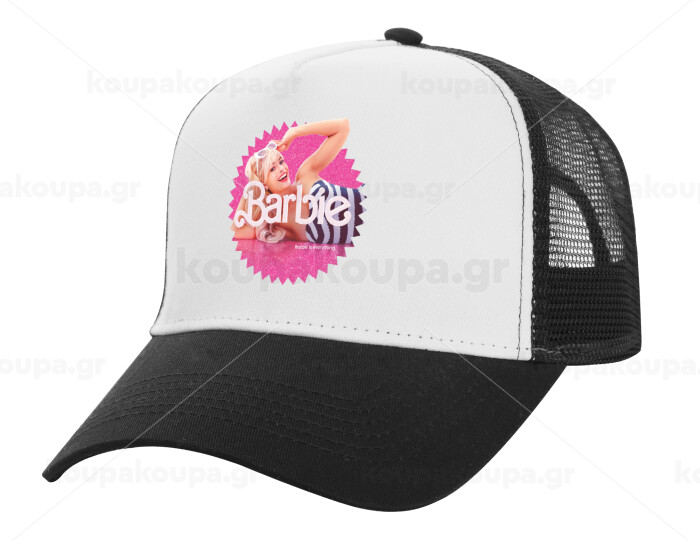Barbie is everything, Adult Structured Trucker Hat, with Mesh, WHITE/BLACK (100% COTTON, ADULT, UNISEX, ONE SIZE)