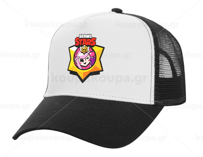 Brawl Stars Melodie, Adult Structured Trucker Hat, with Mesh, WHITE/BLACK (100% COTTON, ADULT, UNISEX, ONE SIZE)