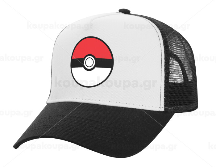 Pokemon ball, Adult Structured Trucker Hat, with Mesh, WHITE/BLACK (100% COTTON, ADULT, UNISEX, ONE SIZE)