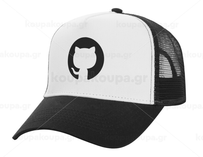 GitHub, Adult Structured Trucker Hat, with Mesh, WHITE/BLACK (100% COTTON, ADULT, UNISEX, ONE SIZE)