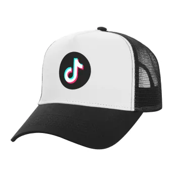 TikTok, Adult Structured Trucker Hat, with Mesh, WHITE/BLACK (100% COTTON, ADULT, UNISEX, ONE SIZE)