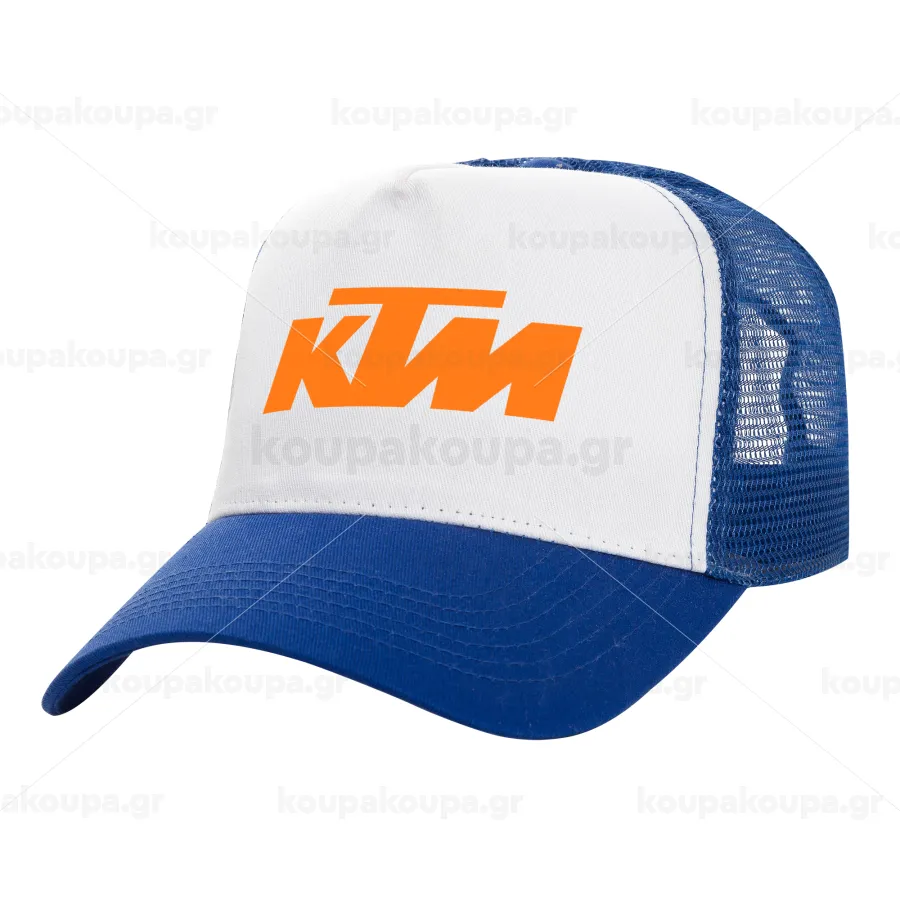 KTM, Adult Structured Trucker Hat, with Mesh, WHITE/BLUE (100% COTTON, ADULT, UNISEX, ONE SIZE)