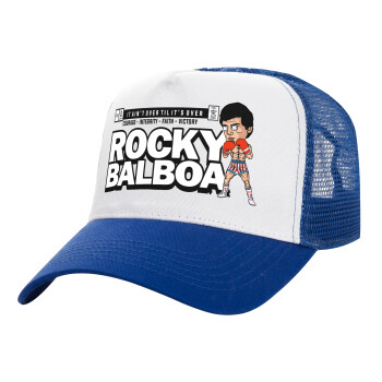 Rocky Balboa, Adult Structured Trucker Hat, with Mesh, WHITE/BLUE (100% COTTON, ADULT, UNISEX, ONE SIZE)