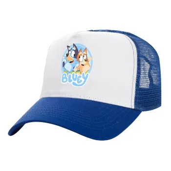 Μπλε, Adult Structured Trucker Hat, with Mesh, WHITE/BLUE (100% COTTON, ADULT, UNISEX, ONE SIZE)