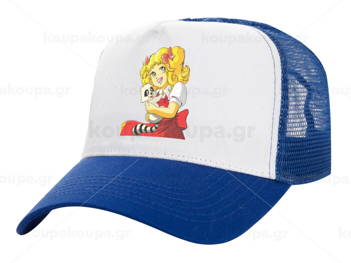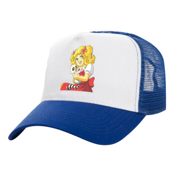 Candy, Adult Structured Trucker Hat, with Mesh, WHITE/BLUE (100% COTTON, ADULT, UNISEX, ONE SIZE)