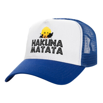Hakuna Matata, Adult Structured Trucker Hat, with Mesh, WHITE/BLUE (100% COTTON, ADULT, UNISEX, ONE SIZE)
