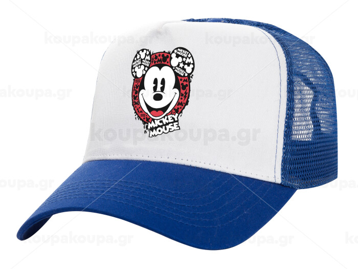 Mickey Mouse, Adult Structured Trucker Hat, with Mesh, WHITE/BLUE (100% COTTON, ADULT, UNISEX, ONE SIZE)
