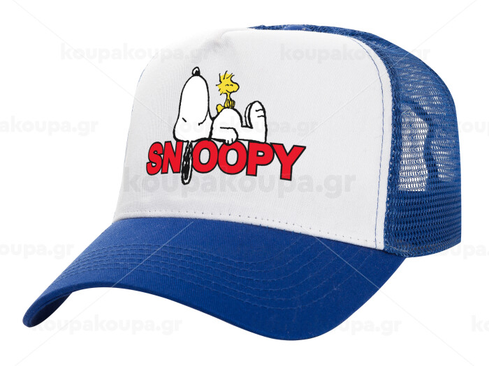Snoopy sleep, Adult Structured Trucker Hat, with Mesh, WHITE/BLUE (100% COTTON, ADULT, UNISEX, ONE SIZE)