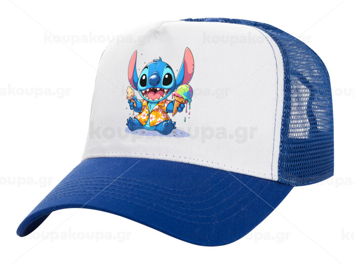 Stitch Ice cream, Adult Structured Trucker Hat, with Mesh, WHITE/BLUE (100% COTTON, ADULT, UNISEX, ONE SIZE)