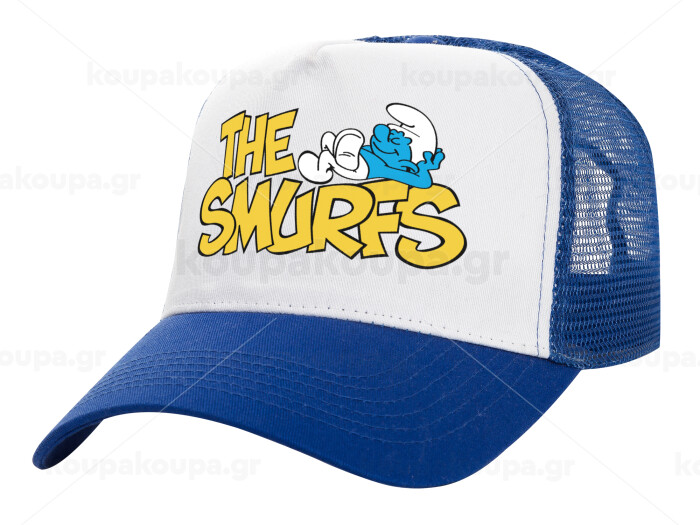 The smurfs, Adult Structured Trucker Hat, with Mesh, WHITE/BLUE (100% COTTON, ADULT, UNISEX, ONE SIZE)