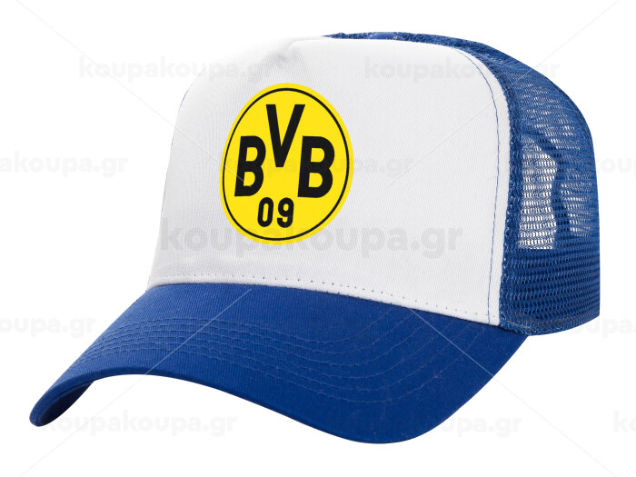 BVB Dortmund, Adult Structured Trucker Hat, with Mesh, WHITE/BLUE (100% COTTON, ADULT, UNISEX, ONE SIZE)