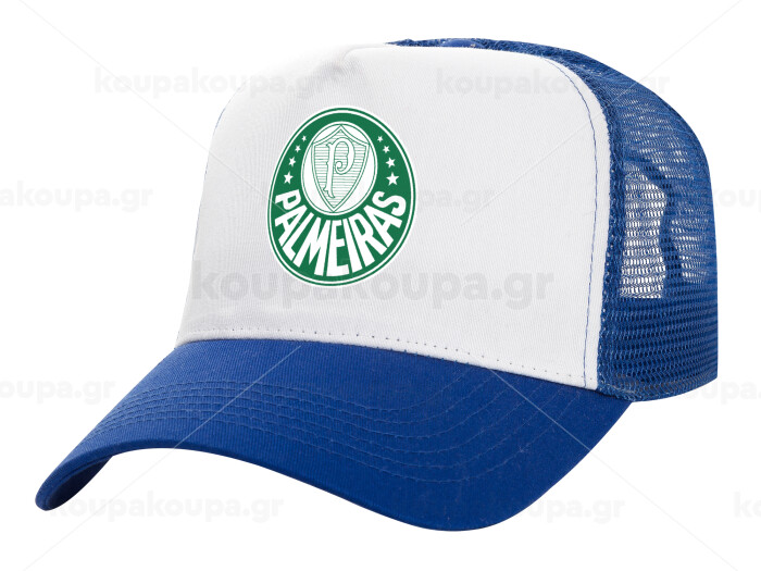 Palmeiras, Adult Structured Trucker Hat, with Mesh, WHITE/BLUE (100% COTTON, ADULT, UNISEX, ONE SIZE)
