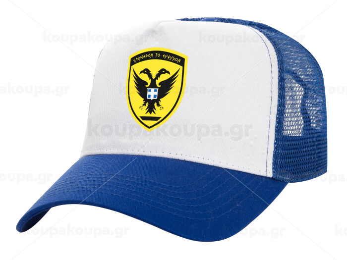 Ελληνικός Στρατός, Adult Structured Trucker Hat, with Mesh, WHITE/BLUE (100% COTTON, ADULT, UNISEX, ONE SIZE)