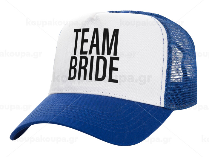TEAM BRIDE, Adult Structured Trucker Hat, with Mesh, WHITE/BLUE (100% COTTON, ADULT, UNISEX, ONE SIZE)
