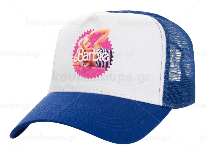 Barbie is everything, Adult Structured Trucker Hat, with Mesh, WHITE/BLUE (100% COTTON, ADULT, UNISEX, ONE SIZE)