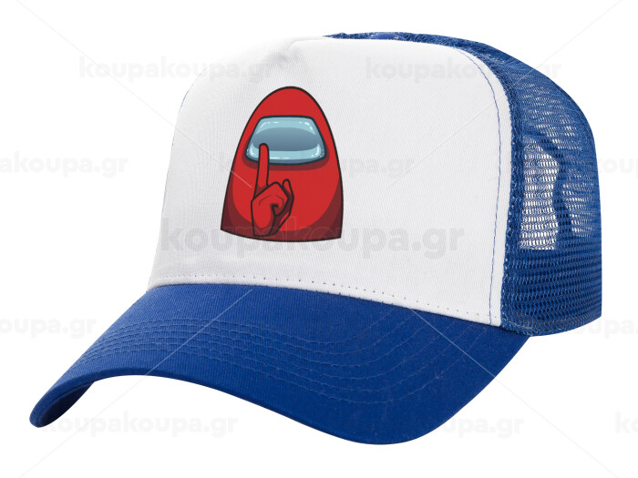 Among US, Adult Structured Trucker Hat, with Mesh, WHITE/BLUE (100% COTTON, ADULT, UNISEX, ONE SIZE)