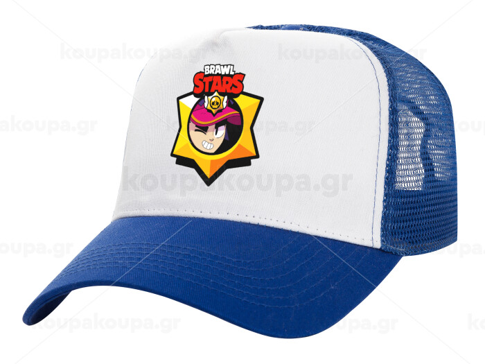 Brawl Stars Fang, Adult Structured Trucker Hat, with Mesh, WHITE/BLUE (100% COTTON, ADULT, UNISEX, ONE SIZE)