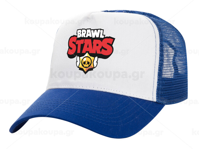 Brawl Stars, Adult Structured Trucker Hat, with Mesh, WHITE/BLUE (100% COTTON, ADULT, UNISEX, ONE SIZE)