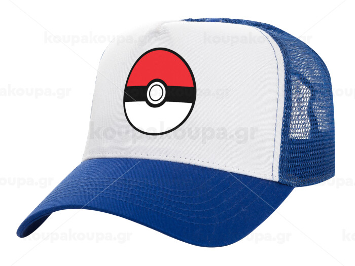 Pokemon ball, Adult Structured Trucker Hat, with Mesh, WHITE/BLUE (100% COTTON, ADULT, UNISEX, ONE SIZE)