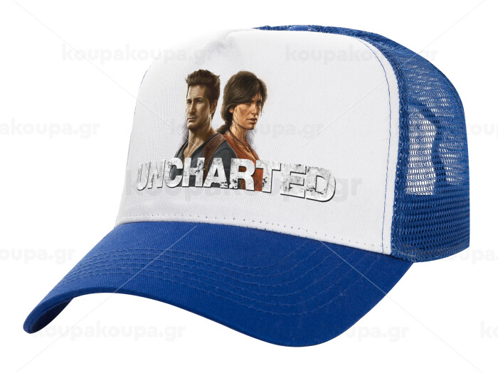 Uncharted, Adult Structured Trucker Hat, with Mesh, WHITE/BLUE (100% COTTON, ADULT, UNISEX, ONE SIZE)