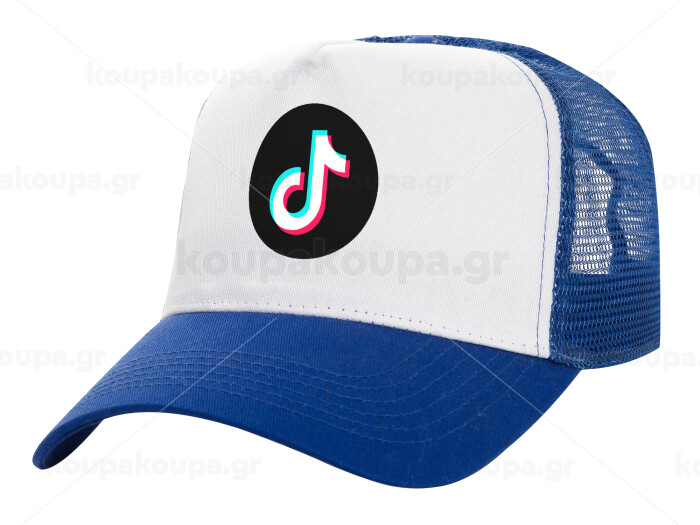 TikTok, Adult Structured Trucker Hat, with Mesh, WHITE/BLUE (100% COTTON, ADULT, UNISEX, ONE SIZE)