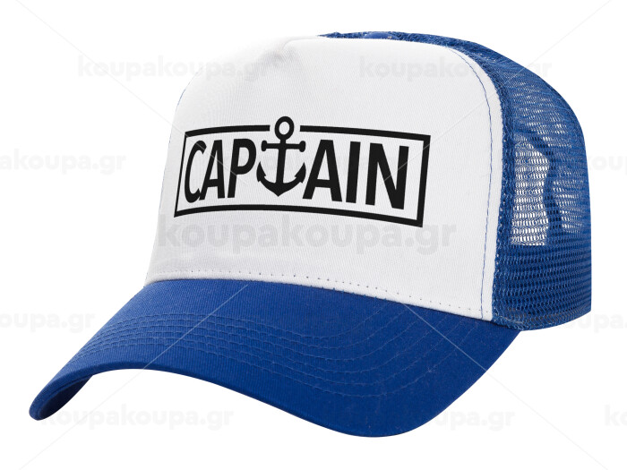 CAPTAIN, Adult Structured Trucker Hat, with Mesh, WHITE/BLUE (100% COTTON, ADULT, UNISEX, ONE SIZE)