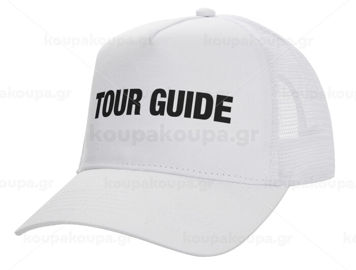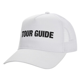 Tour Guide, Structured Trucker Adult Hat, with Mesh, WHITE (100% COTTON, ADULT, UNISEX, ONE SIZE)