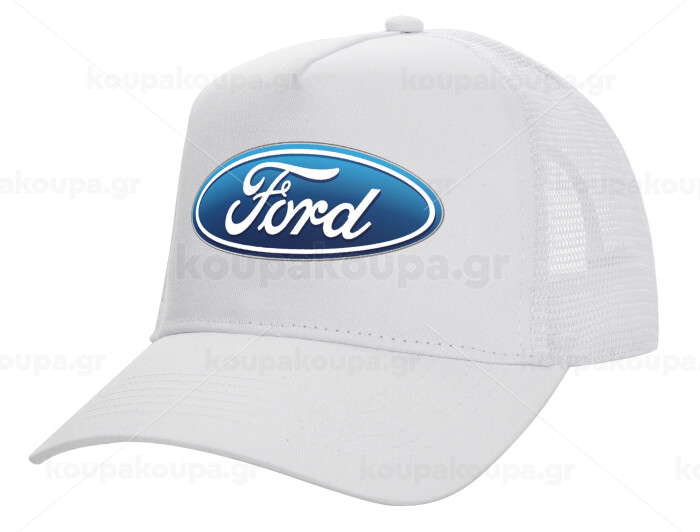 Ford, Structured Trucker Adult Hat, with Mesh, WHITE (100% COTTON, ADULT, UNISEX, ONE SIZE)