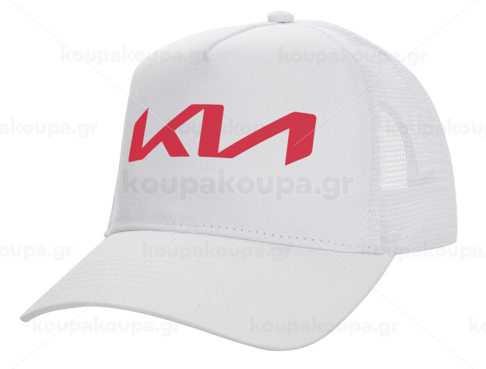 KIA, Structured Trucker Adult Hat, with Mesh, WHITE (100% COTTON, ADULT, UNISEX, ONE SIZE)