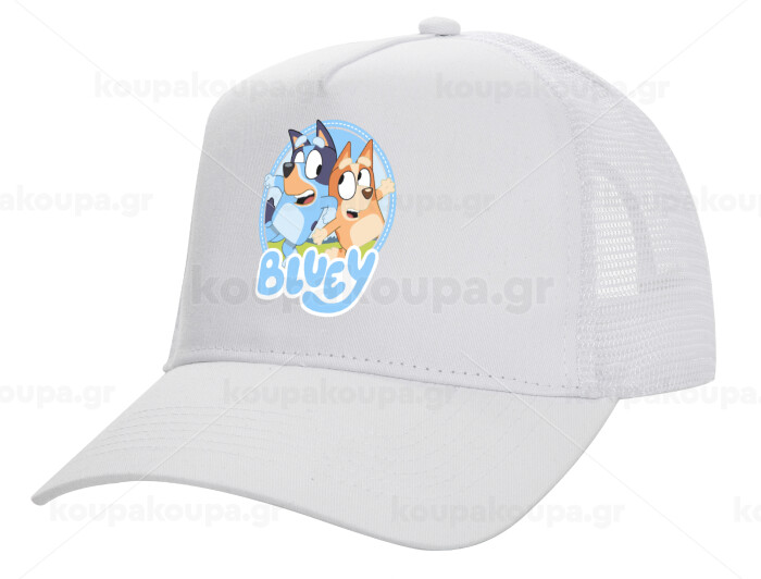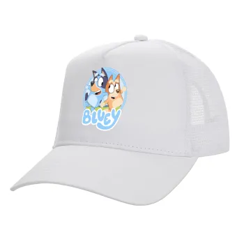 Μπλε, Structured Trucker Adult Hat, with Mesh, WHITE (100% COTTON, ADULT, UNISEX, ONE SIZE)