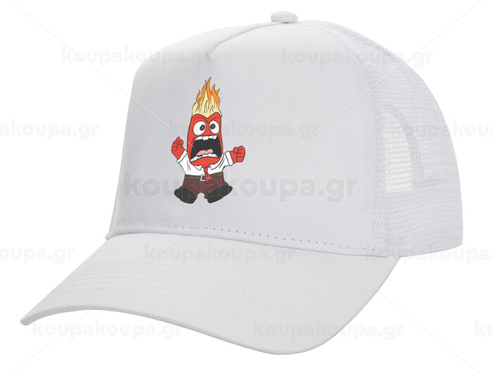 Inside Out Angry, Structured Trucker Adult Hat, with Mesh, WHITE (100% COTTON, ADULT, UNISEX, ONE SIZE)